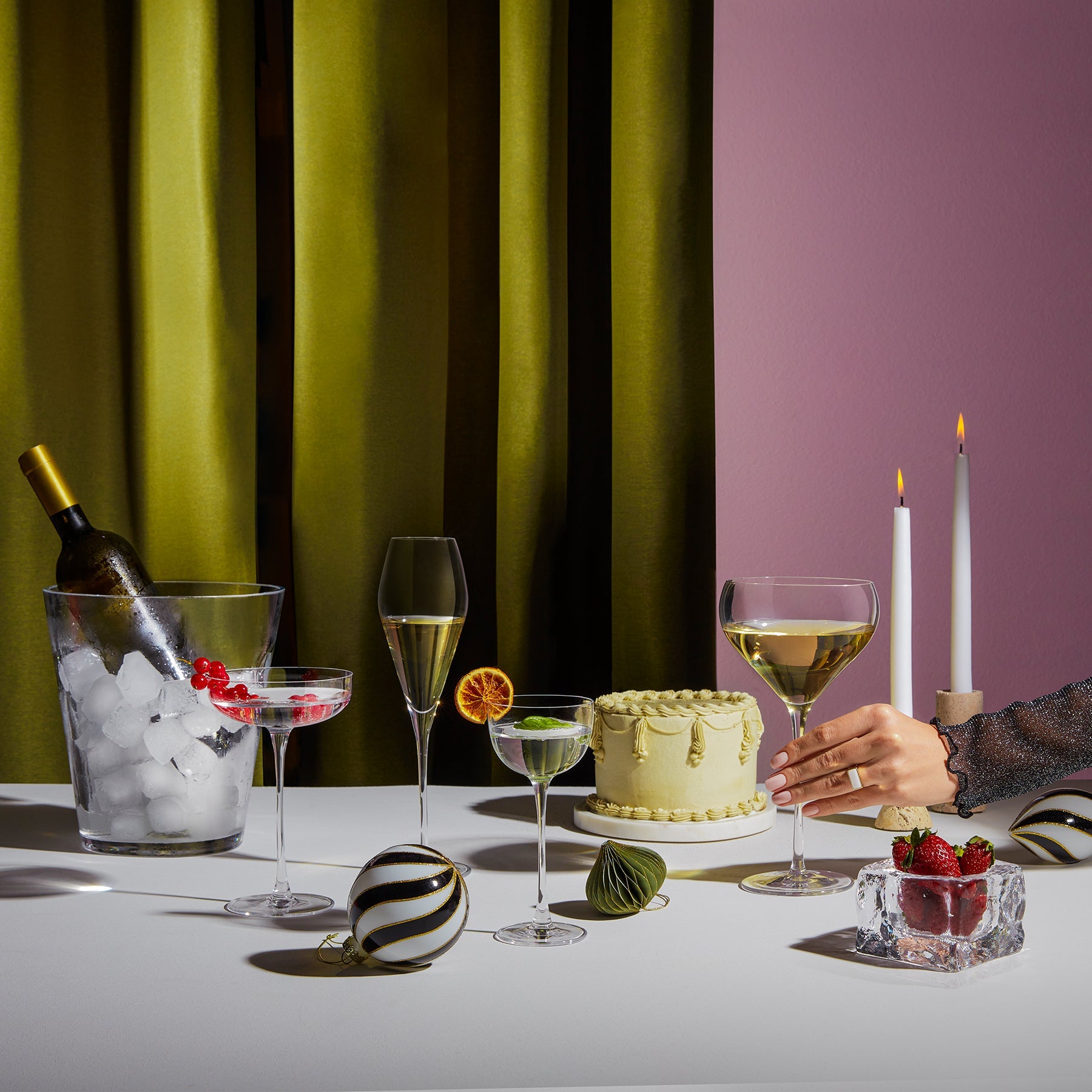 Featuring a crystalline finish and gentle, sweeping curves, the NUDE Fantasy set of cocktail glasses is a proof that traditional glassware works beautifully in a contemporary context. Wine, champagne and cognac options are also available.