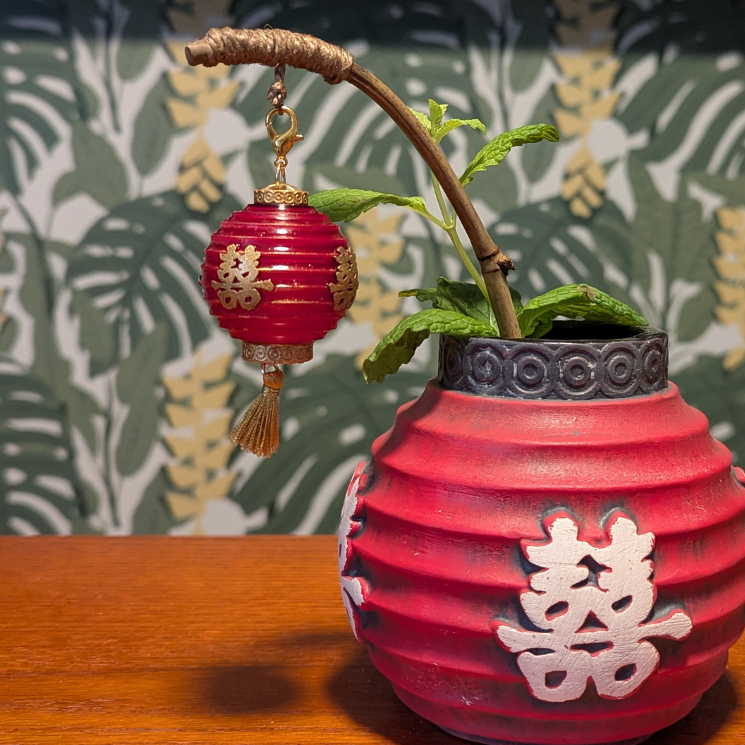 These joyous tiki swizzles feature a dangling Chinese lantern with a light-up feature dry brushed in gold paint and adorned with the symbol for joy/happiness. They light up too! Currently, these are only offered in red with lucky red lights.