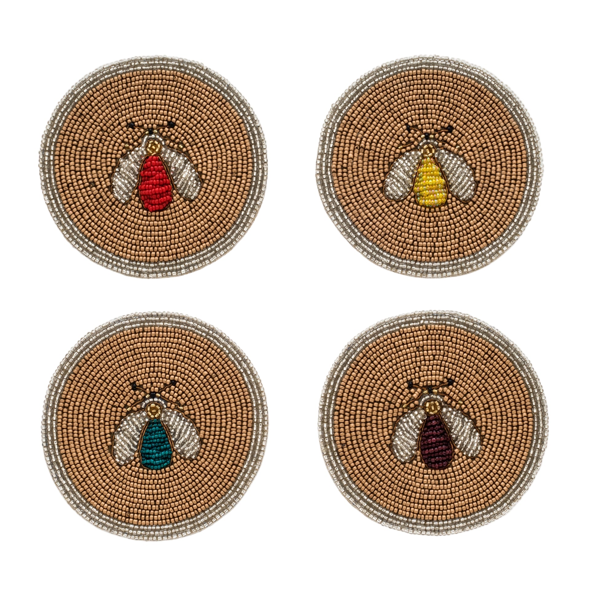 Sparkly bees in rainbow brights perfect for adding a colourful pop to your party table or barcart. These hand beaded coasters are so detailed ... you won't want to put your drink down! Pair these with one of our candy coloured Sparkle Bee hanging ornaments for a joyful Christmas hostess gift!