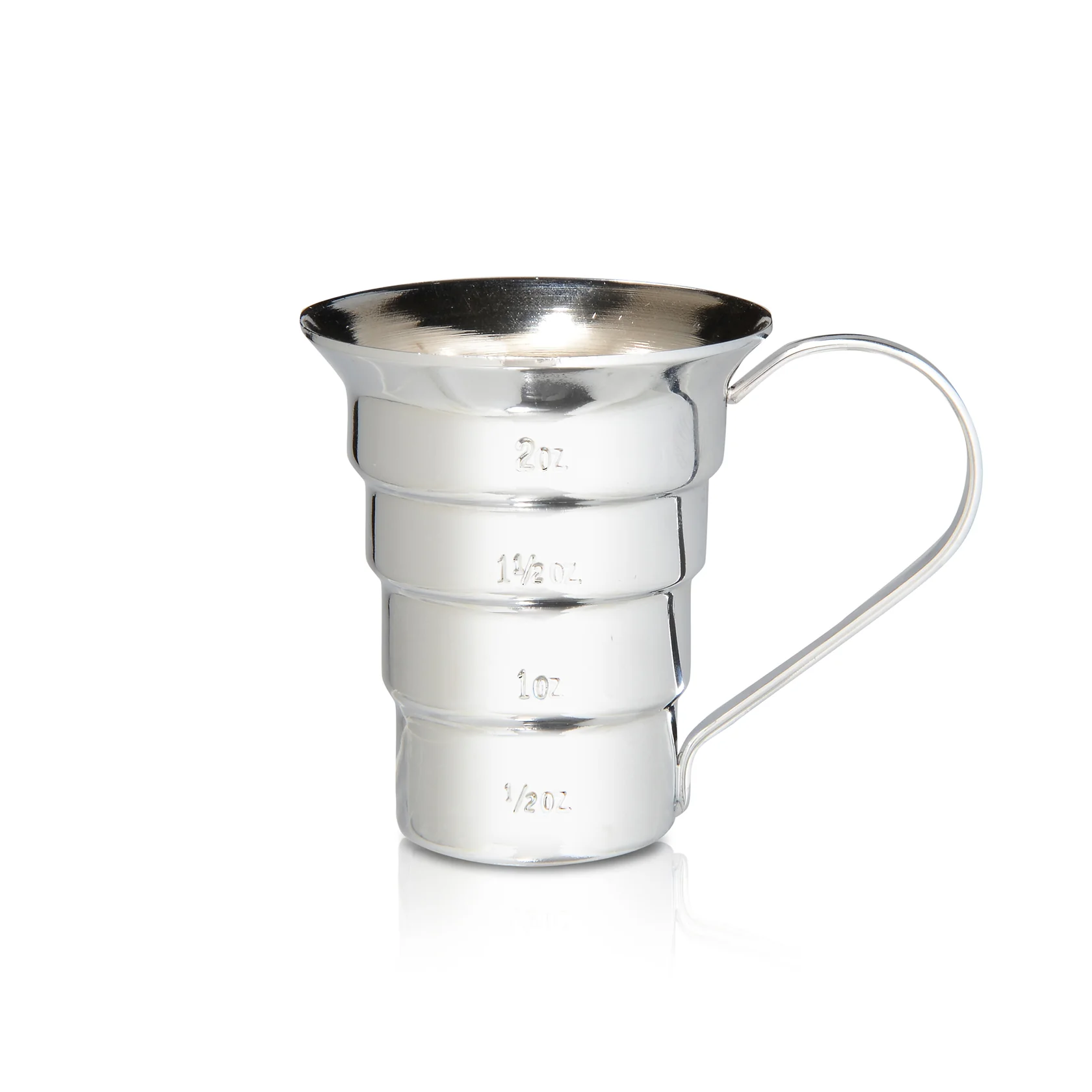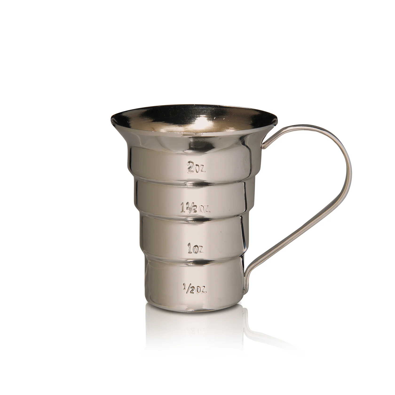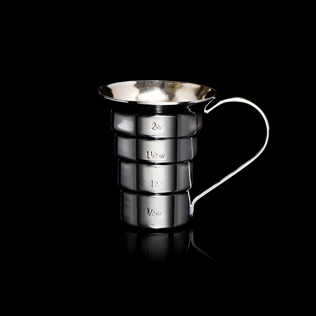 - 2oz (60ml) capacity, with lines measuring 1 ½oz (45ml), 1oz (30ml), and ½oz (15ml).