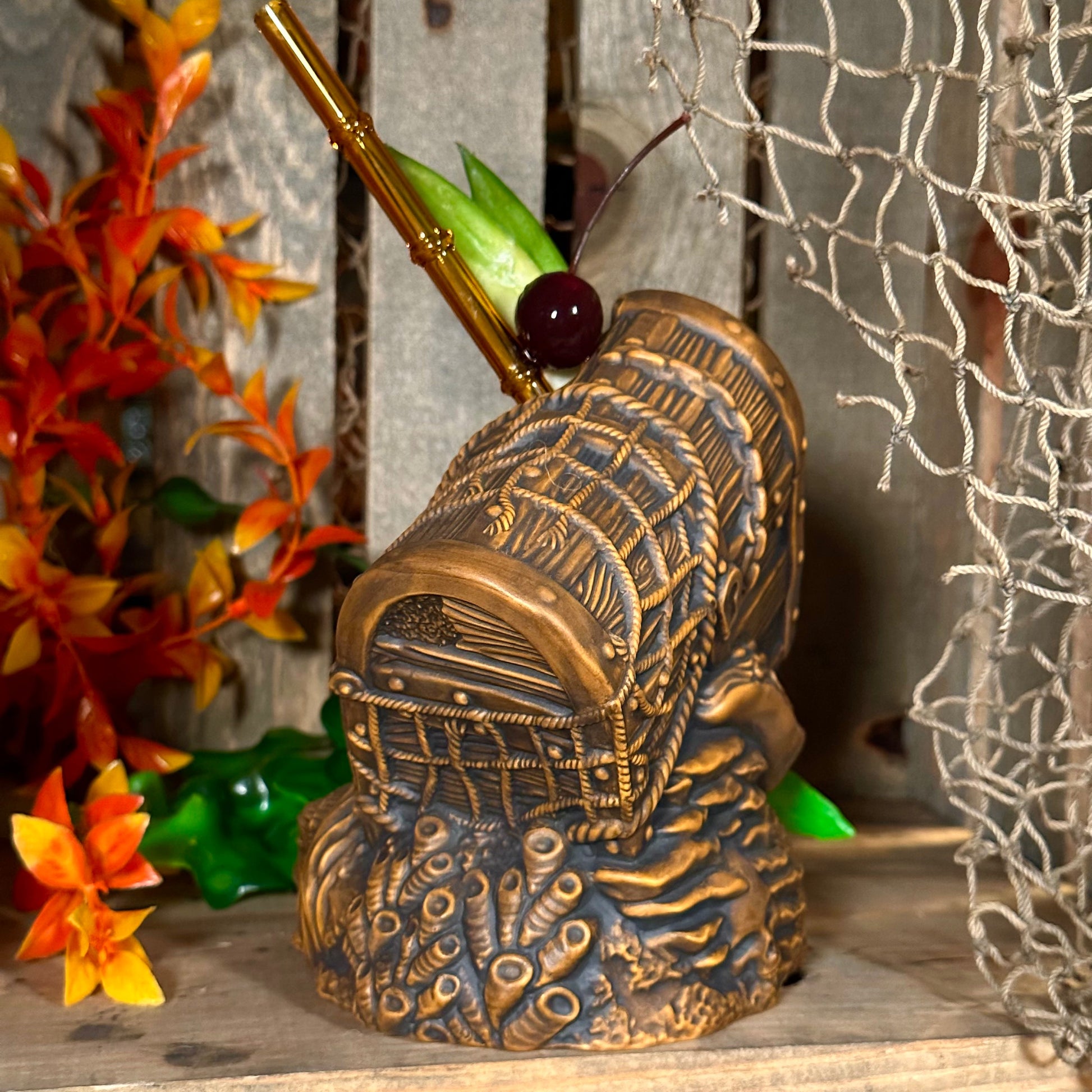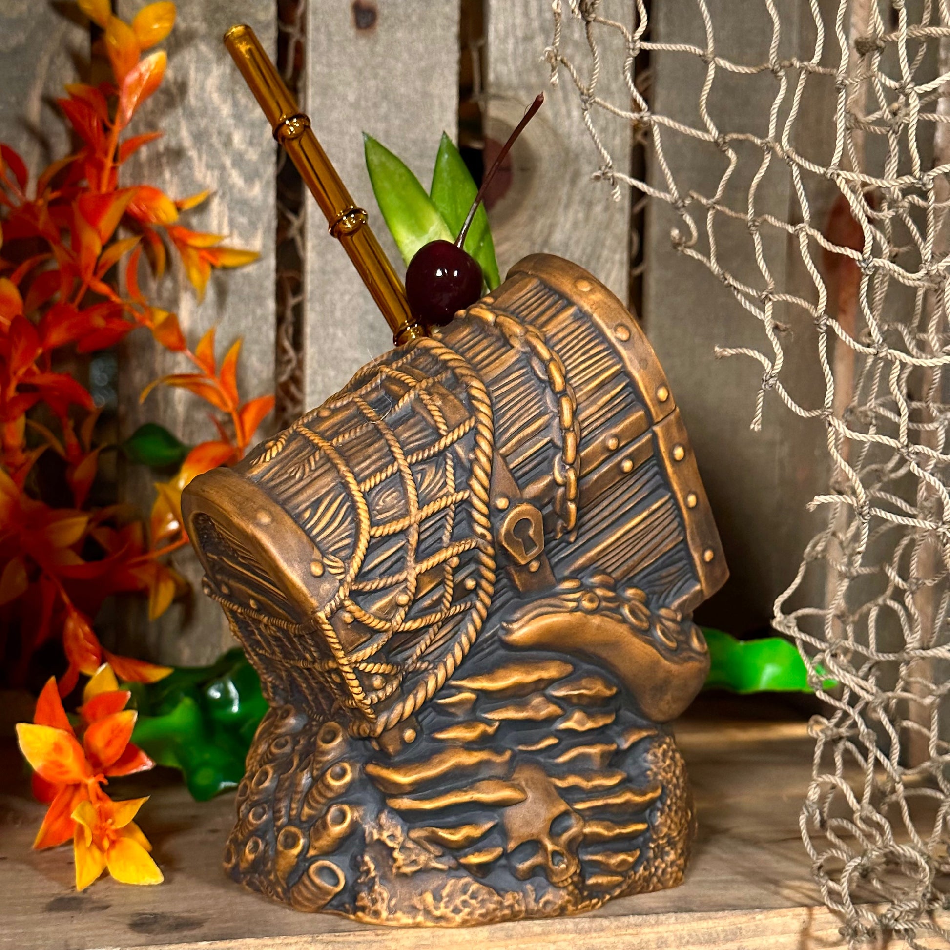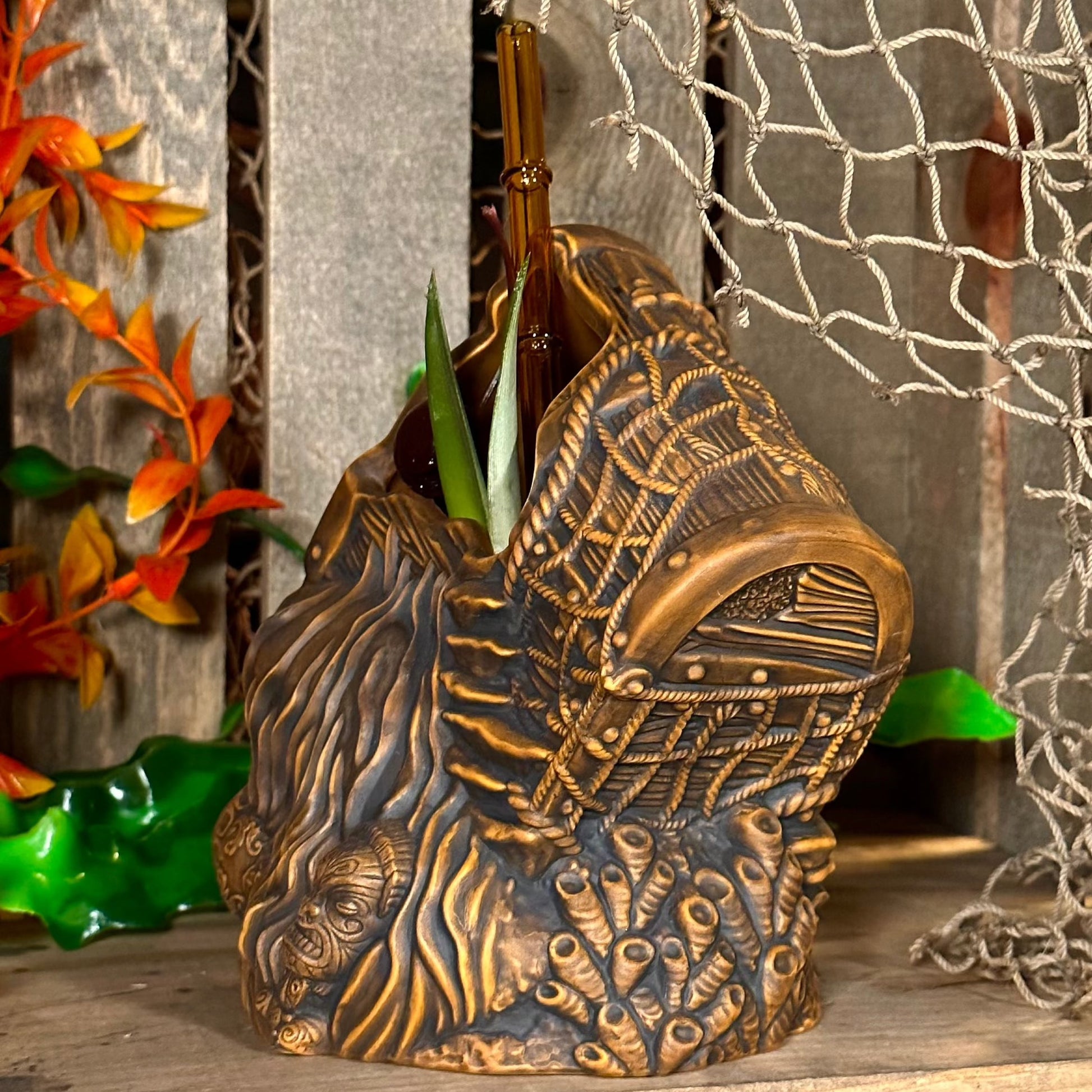 Sunken Treasure (Brown) Ceramic Tiki Mug - Ready to Ship! (FREE SHIPPING in U.S.)
