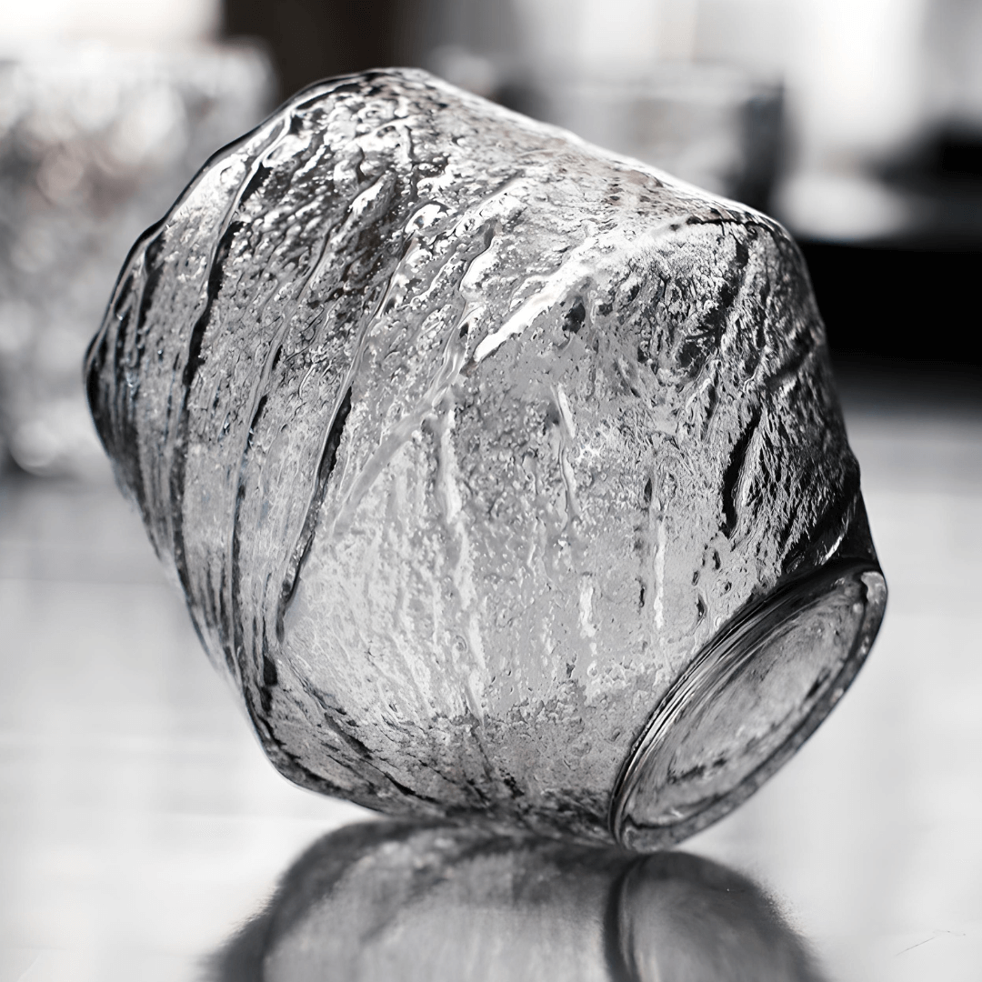 The unique design provides a captivating visual experience as your whisky swirls within. Textured on the outside for a tactile grip, it contrasts with the smooth inner surface, showcasing the rich colors of your whisky.